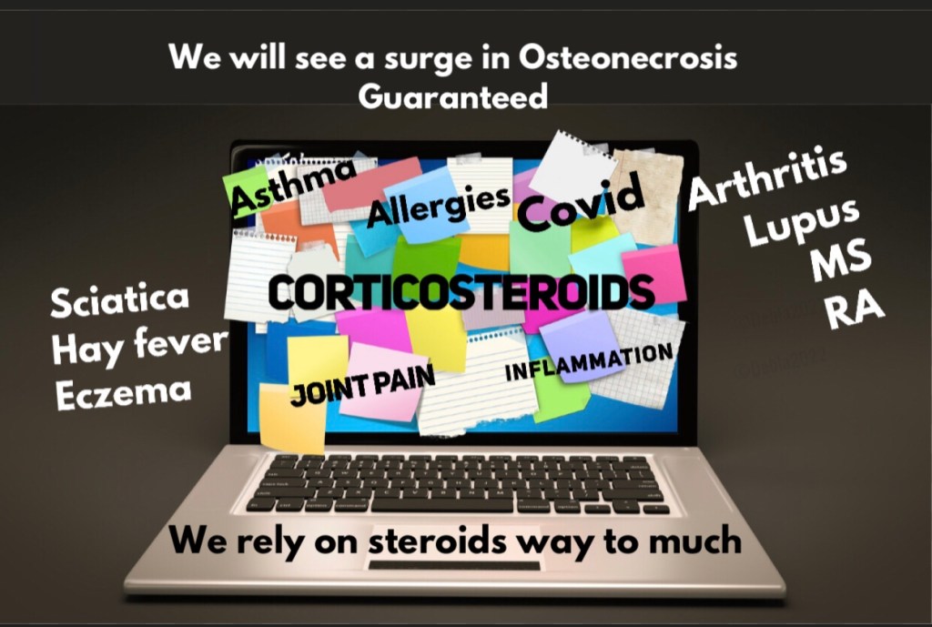 I think with the new Pandemic and all the new strains emerging patients, physicians surgeons and respiratory specialists should be paying close attention because I feel that there will be a sudden influx of men women and some children developing Osteonecrosis because of the treatment of Novel Coronavirus aka Covid19.