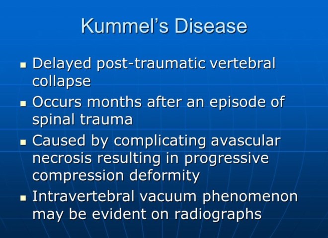 Also if younger and you are diagnosed with osteoporosis your chances are higher to possibly develop Kummel Disease.